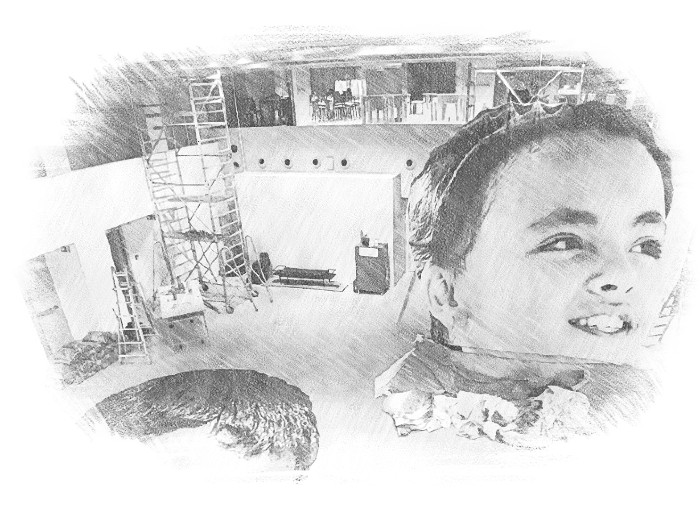 The Gallerie d’Italia exhibition marks the first time that the images of all of these refugee children are together. They are part of a mechanical installation, in which their portraits unfurl as they move upward asynchronously, dwarfing visitors with their monumental size. ” (www.jr-art.net)